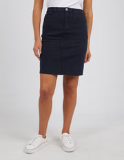 The Belle Skirt Is A Fun Take On Your Classic Denim Skirt. Made From A Medium-Weight Denim This Midi Length Straight Cut Skirt Features A Zip Front, Fitted Waist, And Hip Pockets.