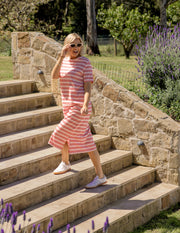 Pink and Red are the ultimate colour combo and add stripes and you can't go wrong! The new Bon Bon Dress is an effortless 100% cotton tee dress that's maxi length and full of colour and fun for those days spent chilling out this festive season!