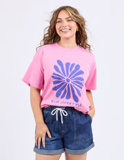 Featuring an exclusive Elm Graphic Print, the Camellia Tee is for those that love something bright and fun.