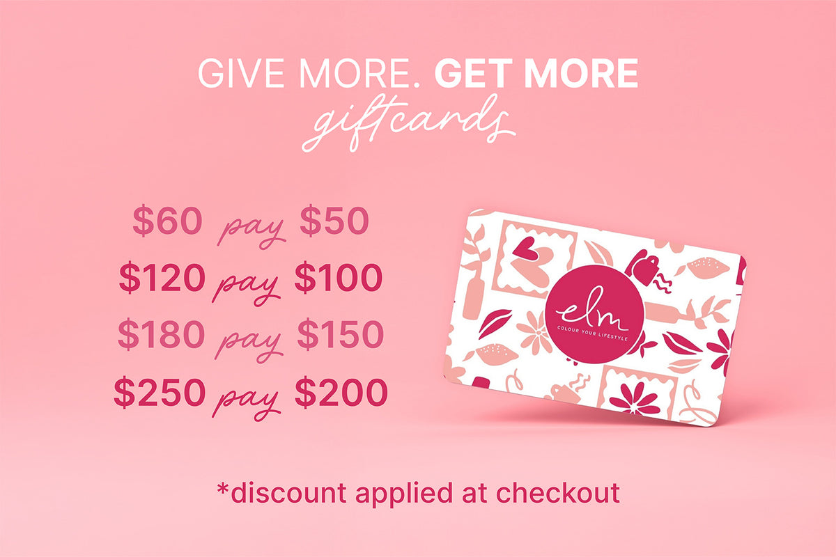 For birthdays, thanks or just because, an Elm eGift Card adds colour, fun, and a whole lot of happy to any occasion. Let them choose their favourite pieces and shop their way.