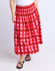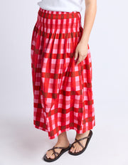 Featuring our exclusive Christmas Poppy Check this stunning skirt is the perfect festive season do-all piece. Wear with a classic white tee for a fresh put together look or dress up with a pretty shirt to be the life of the party.