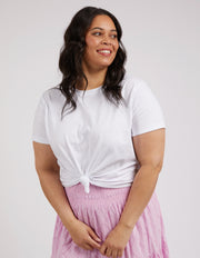 The Dressy Tee That Is Ideal For Every Capsule Wardrobe. Featuring A Knot Tie Front And Short Turned Up Cuffed Sleeves, This Lightweight Cotton Jersey Tee Is Great To Wear With All Your High-Waisted Styles This Season.