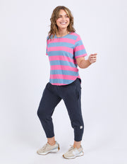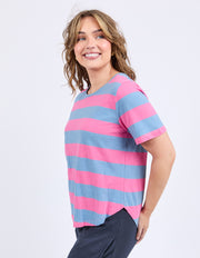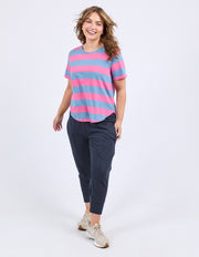 Bold colourful stripes make for a fantastic layering piece. Constructed from 100% cotton slub jersey this mid weight layer is a wonderful colour pop for any wardrobe.